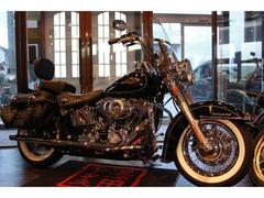 パールホワイト とても綺麗な上物ヘリテイジ入荷いたしました!低走行の傷錆少ないとても調子の良い車両です!とても綺麗で調子の良い車両です!傷錆少ない上物です!北米マフラーが控え目ですがハーレーらしいですが上品な音です!サドルバッグガード、メッキスイッチBOXなどカスタムしてあります!インジェクションチューニングもお任せください!!