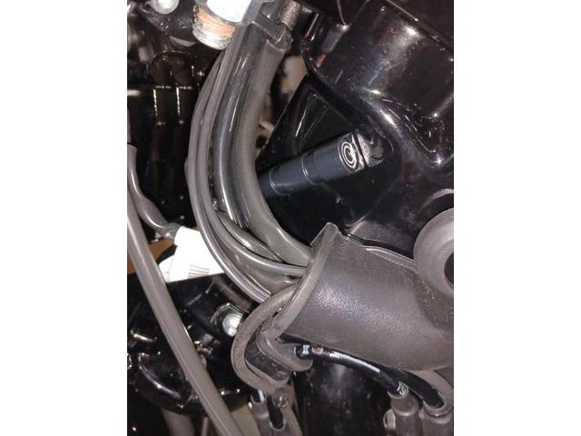 アンテナはここへ。 時々ヘッドライト横やオイルクーラーカバー上部への取り付け希望がありますが、仮に電波をうまく拾えずゲートが開かなかったとしても自己責任の範疇です。そのあたりご了承のうえでしか付けることはありません。