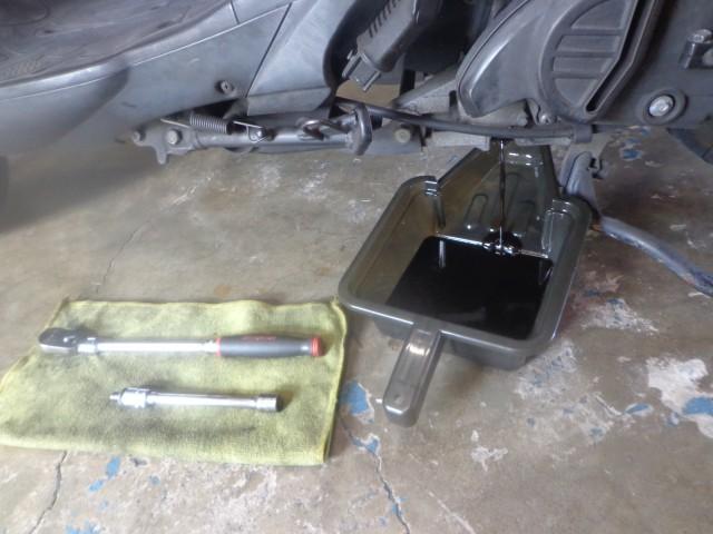 朝一での作業予約をして頂いてたので、待ち時間0でサクッと作業開始ですが… 納車整備でリフトが空いていなかった為、床上作業でした。 オイルを抜く間に簡単な点検と空気圧調整をさせて頂いています♪ オイルは一滴でも多く抜いてあげたいので、20分ぐらいの時間を見てもらっていますが、時間が無い方や、忙しい方は10分ほどで終わらすことも可能です。