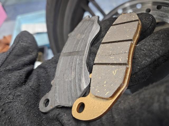 福岡市城南区のバイクショップStrategyです。 ホンダ/PCX125の異音相談のご相談がありました。 原因はフロントパッドの残量が無くなってしまっていた事が原因でした。 ディスクローターに傷がついてしまいましたが、まだ使用可能な範囲だったので良かったです。 ブレーキパッドの残量など、目視で確認できる消耗品の点検は無料です。 当店以外でご購入されたバイクでもお気軽にご相談下さい(^-^) 【人気ブログ記事『安い車検と高い車検の違い』】 https://www.mc-strategy.jp/blog/22144 【下記のURLよりショップLINEのご登録が可能です】 https://lin.ee/n7ILcof ご来店予約やお問合せ等、ご新規のお客様もお気軽にご利用下さいませ。