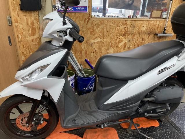 大阪市 東成区のバイク整備工場マツカタモータースです ご予約のスズキ アドレス110 が入庫