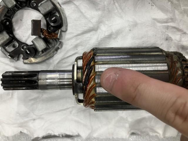 お世話になっております。今回はXJR1200のスターターモーター交換を実施いたしました。 分解して原因を調査したところ、アーマチュアの焼損と判明したためAssy交換となります。
