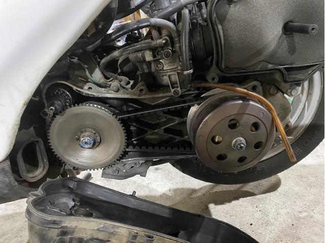 ホンダ ライブディオの駆動系の整備(ドライブベルト・ウエイトローラー・キックギアグリスアップ、各所チェック)
