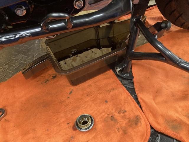 エンジンオイル交換のご依頼 ドレンキャップを外して古いエンジンオイルを排出