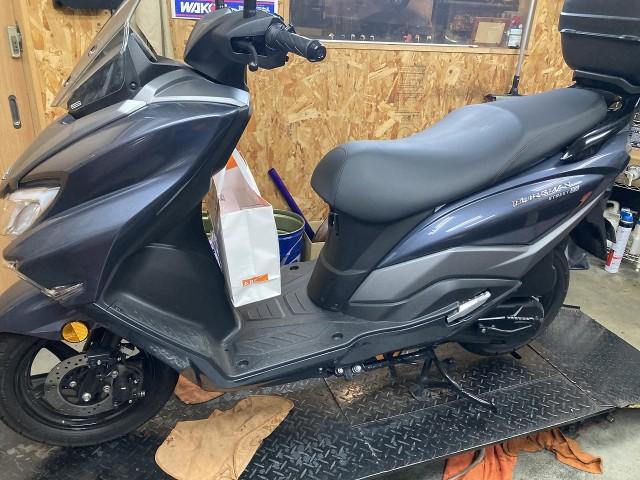 大阪市東成区のバイク整備工場マツカタモータースです ご予約のバーグマンストリート125EXが入庫