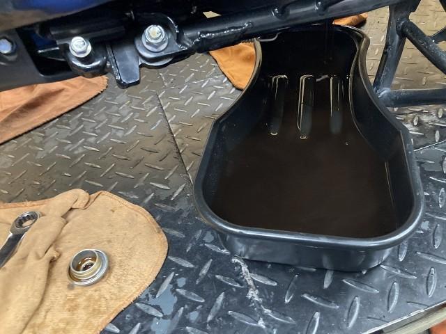 エンジンオイル交換のご依頼 エンジン下部のドレンキャップを外して古いエンジンオイルを排出