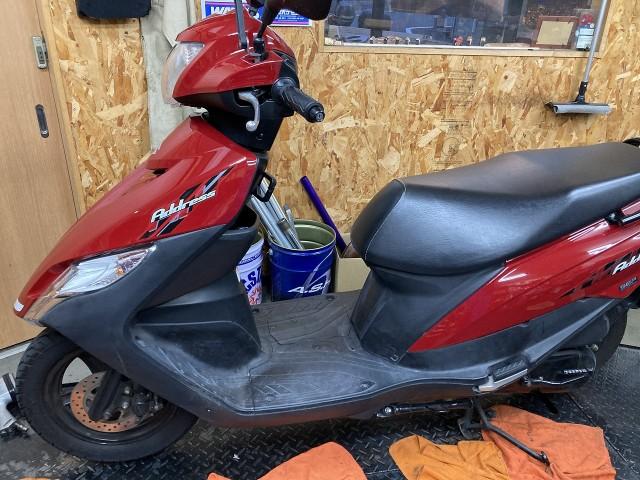 大阪市 東成区のバイク整備工場マツカタモータースです ご予約のスズキ アドレス125(DT11A)が入庫