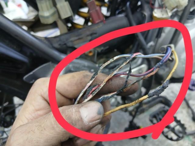 中にCDIの配線が通っているので溶けていました