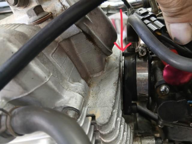 インマニのボルトも緩んでおり、二次エアを吸っていました。 入庫時セルではエンジンかからず。キックのみの始動でしたがしっかりボルトを締めたらセル始動できるようになりました。
