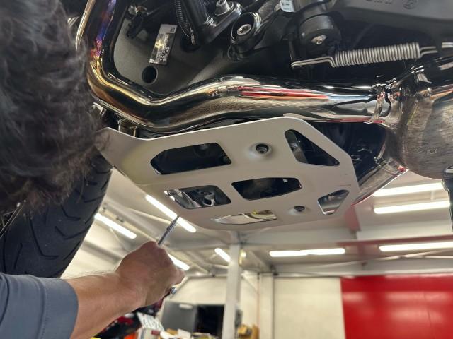 エンジンオイルを規定量注入し、綺麗に清掃したエンジンガード類を取り付けていきます。