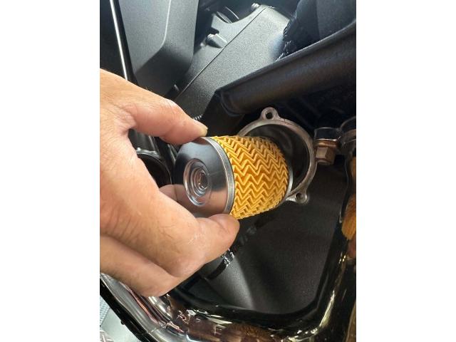 エンジンガードを取り外してエンジンオイルを抜き オイルフィルターも取り外します。