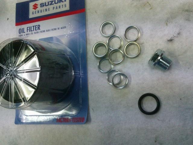 エンジンオイルとオイルエレメント交換 ドレンボルトを緩める時にトルク不足を体感 つぶれる部分があまりない薄めのアルミガスケットとアルミドレンボルト 加熱で緩みが生じたような印象、無印字メーカー不明のオイルエレメント 当店で新車購入頂いたワンオーナー車の下取り車整備 スズキ純正に切り替えて、オイルフィラーキャップOリングも交換 ドレンボルトはメイドインジャパンのスズキ純正マグネット付き エンジンオイルはエクスターR7000 車両ご購入ありがとうございます。