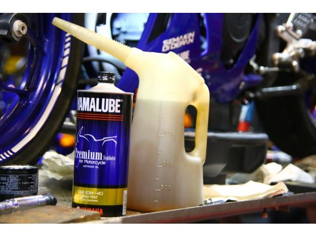 ルブロスオイルを当店公式推奨エンジンオイルとしておりますが、それ以外でも主要オイルメーカーを取り扱っています。 エルフ、カストロール、モチュール、シェル、モトレックス、レプソル、ワコーズ、スペクトロ、スノコ、リキモリ、他。 オートバイメーカー純正、あるいは指定オイルも扱っておりますのでお気軽にご相談ください。 今回はお客様ご指定のヤマハブランドのエンジンオイルYAMALUBE 100%化学合成油のハイグレードエンジンオイル プレミアムセンティック10W-40を使用します。