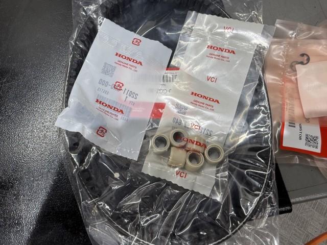 ホンダTACTやヤマハJOGのリコールでドライブカバーを開けるのですが、駆動系が消耗している車体がすごく多いので、リコールのついでに整備できるように駆動系部品を2セット常時在庫しております。 こちらの車体はクラッチの摩耗の進んでいましたのでベルトやローラーなどと同時にクラッチも交換/整備させていただきました。