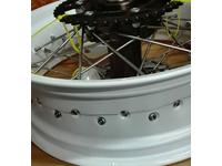 701ED用のど太いホイ―ル装着! これでオンもオフがいける! ポン付けだからいいね!