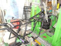 750SSのフレーム修正になります。 見た目は、問題無いように見えますが修正機にセットし測定・・・
