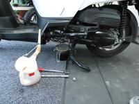 オイル交換。約10分程時間を要しますが、エアー圧・ブレーキ調整なども同時に行い、お客様には安心して御乗り頂けるように点検しております。
