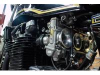 Z2:750RS;CVKキャブレターにオーバルタイプのパワフィル装着。サイドカバーを削ってもOKと言われてましたが純正のカバーなのでパワフィルの方を加工して何とか装着しました。