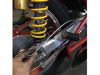 続いて車体の右側に回ります。 リアブレーキのトルクロッドもしっかりとメンテナンスしてあげます。 フレーム側に取付けられる部分の部品構成が適当…。 しっかりと組み直してあげます。