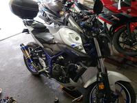 いつもカスタムや増車などでいつもお世話になってる常連のお客様です。 今回はMT-25のオイル交換でバイクを入庫していただきました!