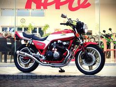1981年 検2026/12 減算歴車 レッドII 150台限定のボルドール2入庫しました1981年の鈴鹿8耐にてホンダフランスがRS1000で優勝した記念モデルとして150台限定で発売されたボルドール!ボルドールと言うとあの大きなカウルリングを思い起こす方も多いでしょうが当時はカウルやオイルクーラーがまだ認可されていなかった為まずネイキッド状態で販売してその後販売店に持ち込んでオプションとしてカウル等の取り付けを行っていたのでそのままネイキッドで乗る方も当然いたわけですね!今回紹介はそんなネイキッドバージョン!ヨシムラサイクロンマフラーに社外オイルクーラーやオーリンズリアサスを装備したフェンダーレス仕様になります!素晴らしく綺麗に仕上げられた現車必見の価値有りな車両ですよ! |