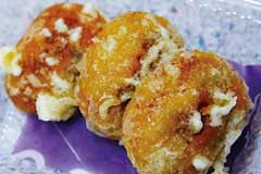 小麦粉と味噌を練りこんだ皮でこしあんを包んだ元祖身延まんじゅう。1626年創業の甘養亭では、揚げまんじゅうや、味噌風味以外のミニまんじゅうも販売している。