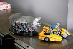 秩父市内の北側、 定峰峠の入り口近くにある「Hi〜な」。 こじんまりした店舗にはカウンター席と少数ながらテーブル席もある。 店内には旦那さんの趣味がすぐにわかるバイク系ミニチュアが置かれている。