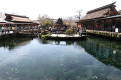 忍野八海は、 八つの泉があることから付けられた名前。 お土産物屋が多く観光客も次々と押し寄せ大変賑わっているため商売的な匂いがプンプンするが、 澄んだ湧水や、 そこを泳ぐ魚を眺めていると、 清らかな気分になる。 写真の池は、 園内にあるが忍野八海のひとつではない。