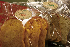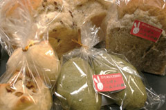 赤米や黒米などの古代米を原材料に使った天然酵母パンを提供。 ゆっくり時間をかけて発酵させているので、 風味やパンのモチモチ感が従来の天然酵母パンとひと味違う。 ニンジンやほうれん草など自家製の野菜を使ったオリジナルラスク(各200円)もオススメ。