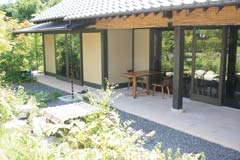 テラス席。 庭園を眺めながらリラックスできる。