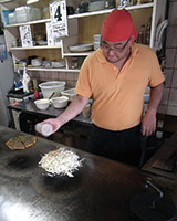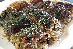 女性でもペロリと間食できてしまう油控えめのヘルシーお好み焼きが人気。 山盛りのキャベツと焼きそばが入った広島お好み焼きは、 小サイズでも直径約28cmとボリューム満点。 メニューも豊富で、 麺ナシから、 そばとうどんから選べる麺アリまで全34種。 トッピングも肉と卵をベースに、 イカ天や生イカなどが選べる。